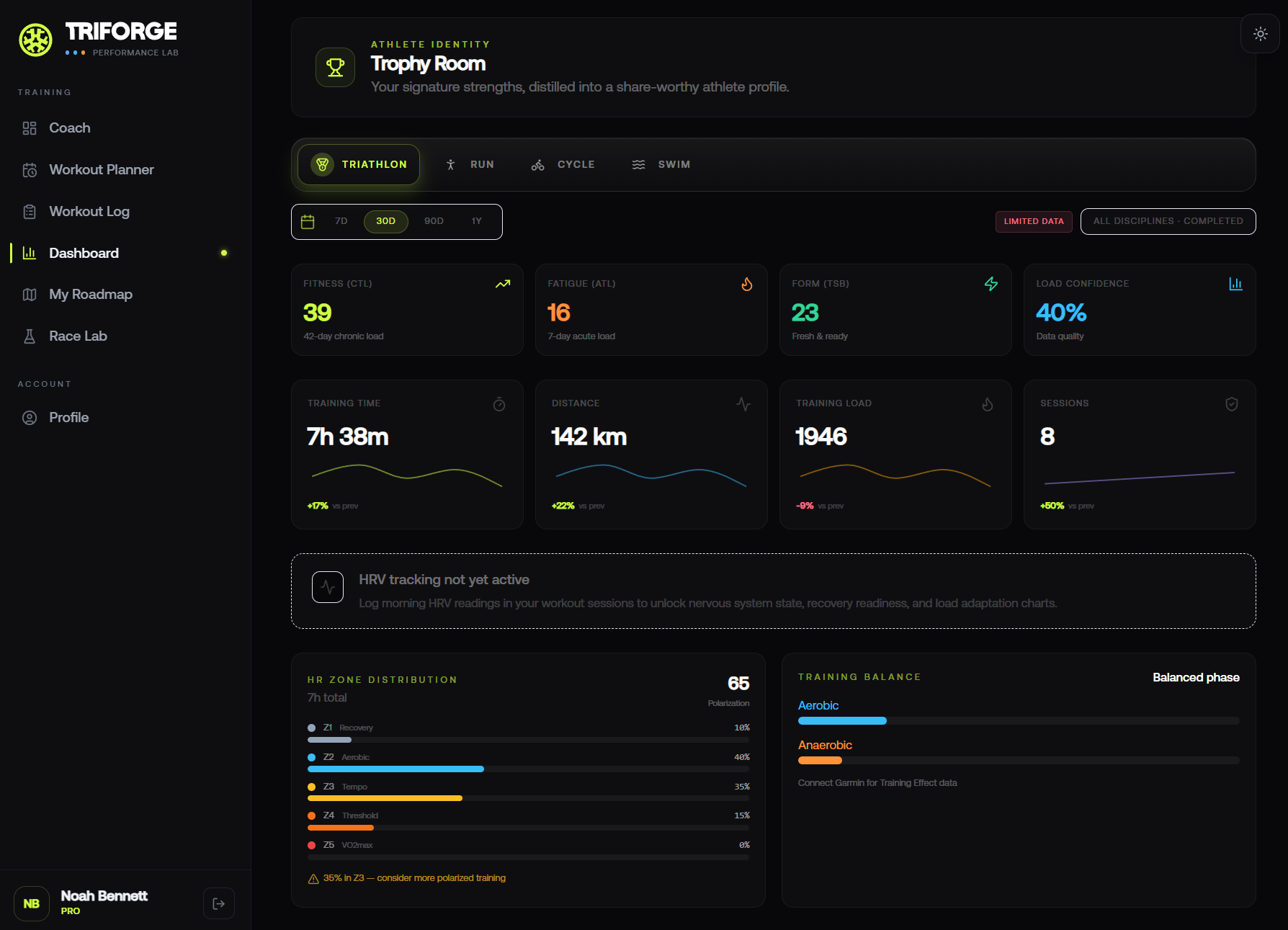 Managing training load across three disciplines, swimming, cycling, and running, adds a layer of complexity that single-sport tools weren't built for. Triforge is designed to handle exactly this. The platform aggregates load across all modalities via Strava integration, giving you a unified view of your acute and chronic training stress rather than fragmented numbers in three separate apps. Its adaptive coaching engine uses your real training data to flag when your workload ratio is drifting into risky territory, and adjusts upcoming sessions accordingly, pulling back intensity before you dig a hole, not after. For athletes who want to train hard and race well without the guesswork of manual load calculations, Triforge makes the science actionable.